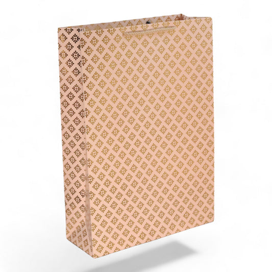 Paper Bags Gold Flower Foil Print 12 Pcs Medium Size (10 x 14 inch) Pastel Baby Pink